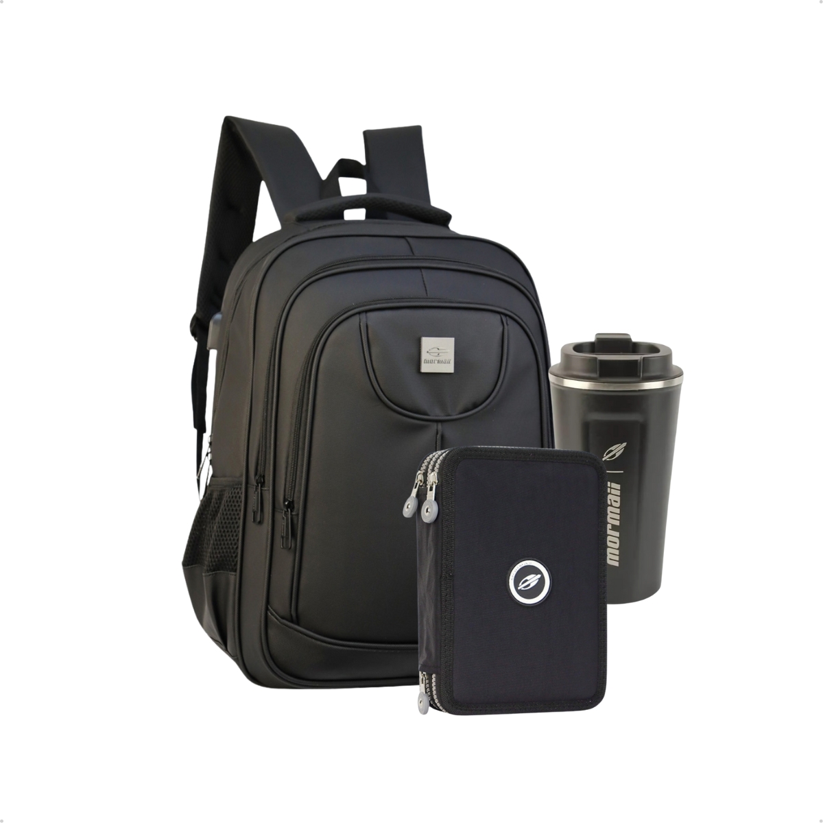 Conheça o kit Mormaii perfeito para quem busca praticidade e design em todos os momentos do dia. Este kit foi pensado para te acompanhar em suas jornadas diárias, oferecendo soluções inteligentes e estilosas. Aproveite por muito mais tempo suas bebidas favoritas com o copo térmico indispensável para o seu dia a dia. Com o estojo porta objetos você mantém seus acessórios essencias sempre a mão. Tudo isso muito bem acomodado em mais um item do seu kit, a mochila ideal para o ambiente de trabalho ou estudos. Seus compartimentos internos bem organizados garantem que você carregue tudo o que precisa com conforto,em ordem e segurança.